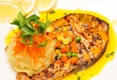 Our fresh flown Norwegian salmon grilled to perfection served with mashed potato, veggie and lemon sauce.