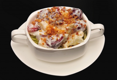 Mix of grape, strawberry and melon tossed with roasted peanut and honey mayo dressing.